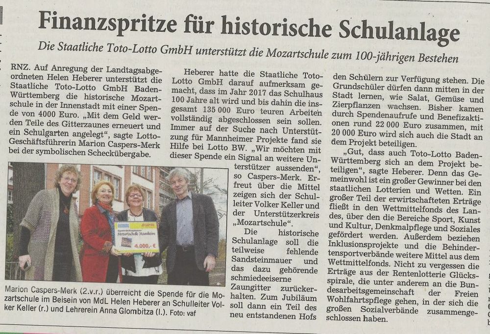 Lotto-Spende im Vorfeld des Schuljubiläums