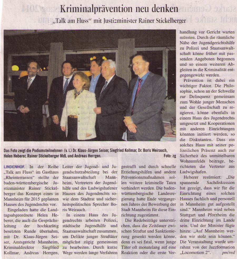 Lesen Sie im Anhang einen Bericht aus den Neckarau-Almenhof-Nachrichten über die Veranstaltung von Helen Heberer MdL mit Justizminister Rainer Stickelberger MdL am 19. Februar in Mannheim: